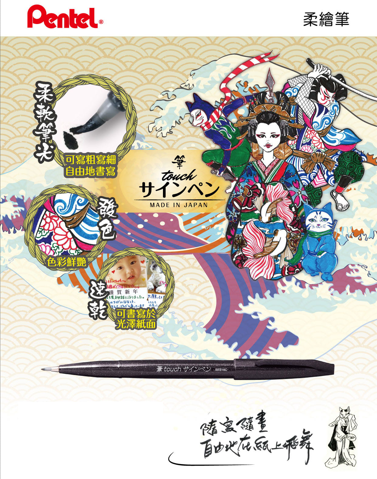 ■柔軟筆尖:可寫粗寫細,自由地書寫