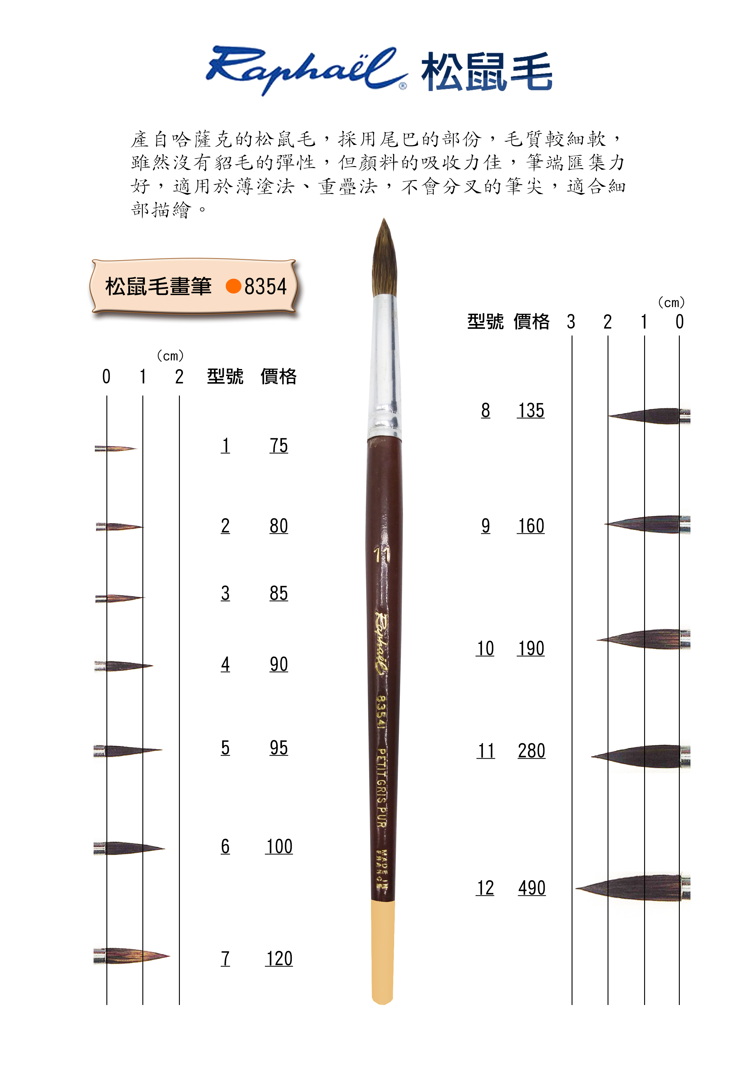拉斐爾 Raphael NO.8354 松鼠毛水彩筆(圓)