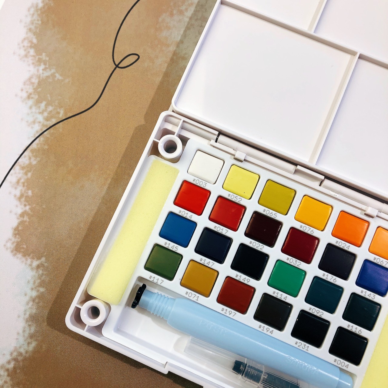 ● 材質:塑膠調色盤、自來水筆、塊狀水彩